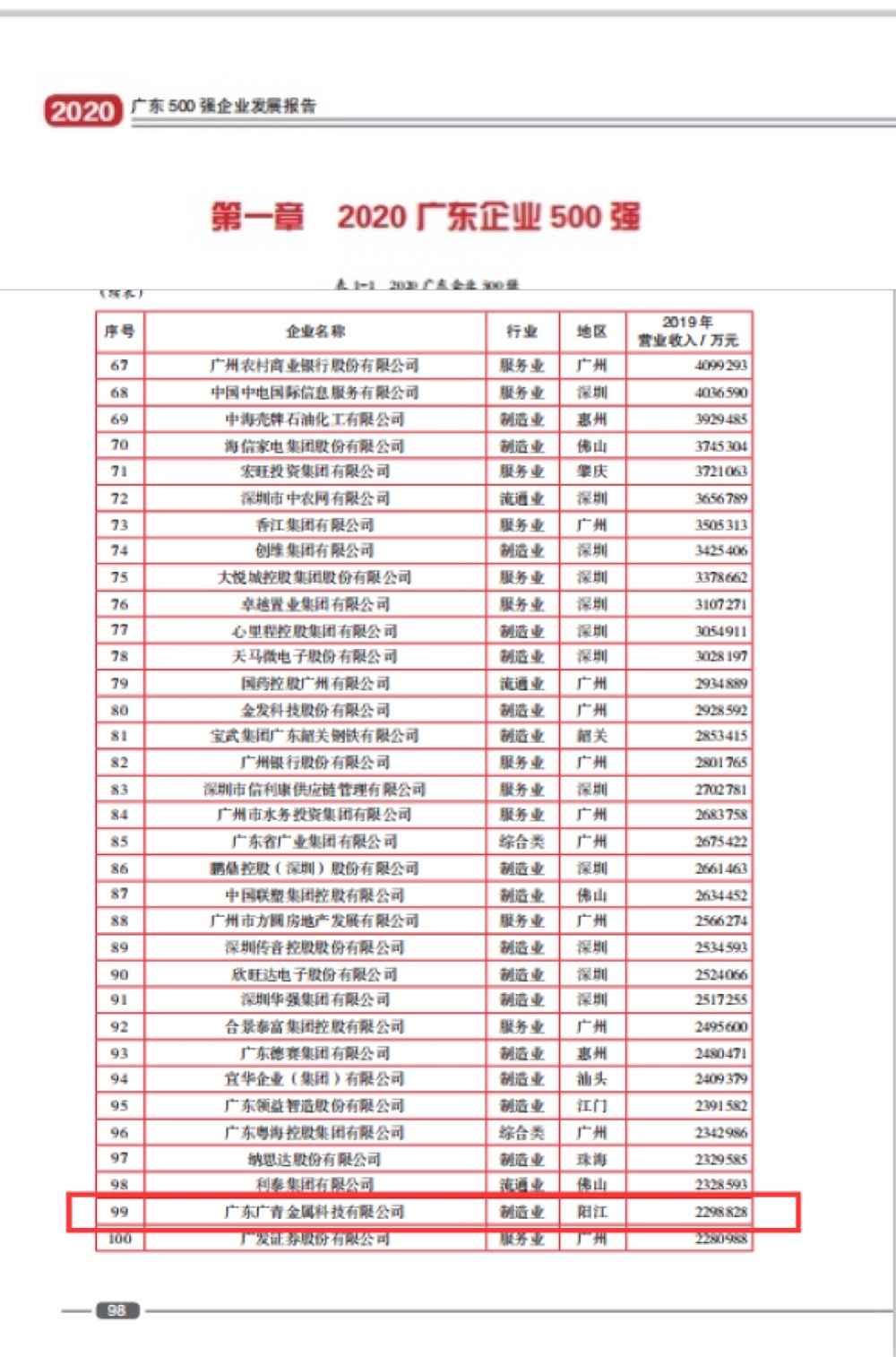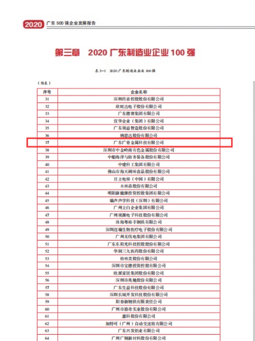 近日,广东省企业联合会、广东省企业家协会发布了2020年度广东企业500强榜单。广青科技位列2020年广东企业500强第99位,2020年广东省制造业100强第37位,并入选2020年广东创新企业100强。