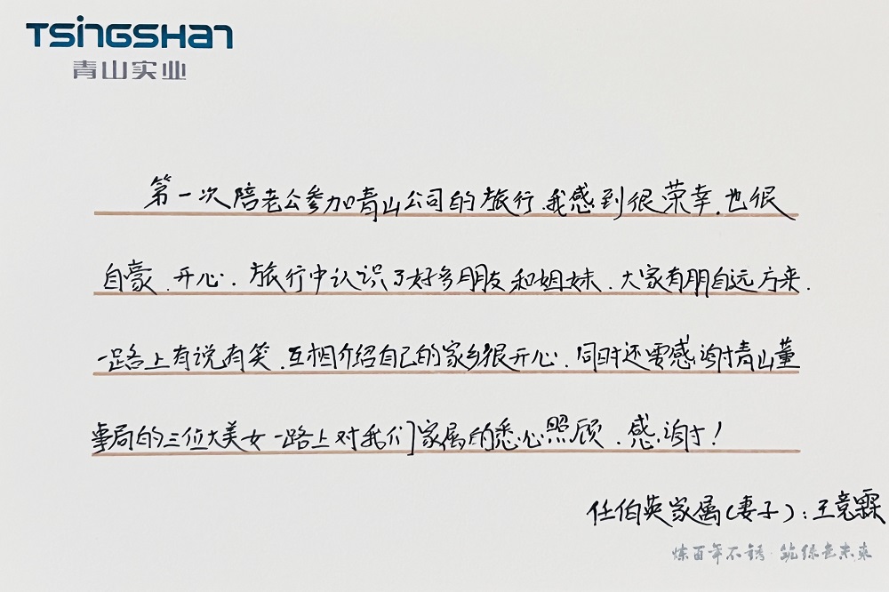 宋长微:非常感谢公司提供了这样的机会,我带着父母参加了这次云南的行程,此次活动让我深刻感受到企业对我们的关心和重视,我将在今后的工作中继续不断提升自己,同时祝愿各位同事和家属身体健康、万事如意!