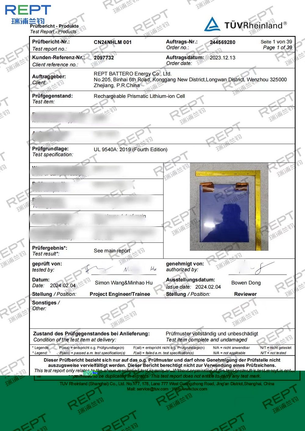近日,瑞浦兰钧能源股份有限公司问顶345Ah储能电芯通过了德国莱茵TÜV Rheinland颁发的UL1973、UL9540A、IEC62619三项国际权威认证,同时通过了UN38.3认证,这标志着问顶345Ah储能电芯在安全性能上已经达到国际标准,并获得了通往国际市场的通行证。