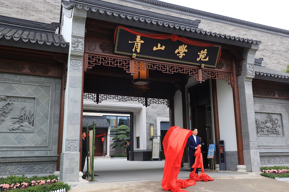 在全场热烈的掌声和一片喜庆的鞭炮声中,项光达主席为jinnianhui今年会学苑揭牌。