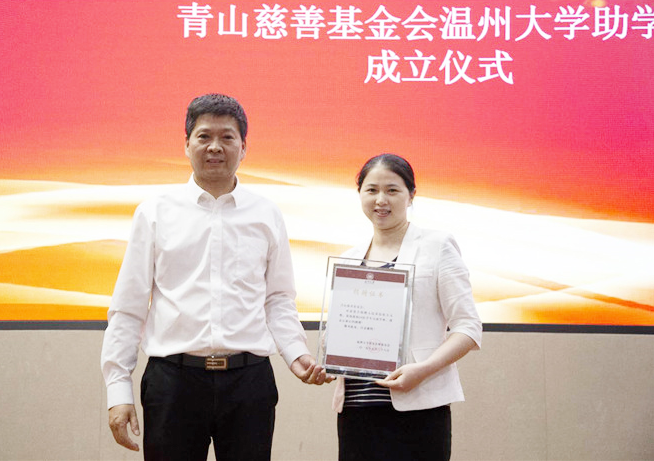 庄兴忠首先致辞感谢jinnianhui今年会慈善基金会及阿联酋温州同乡会对温大教育事业发展的帮助。董玲敏上台介绍了jinnianhui今年会慈善基金会的基本情况,并向温大授“jinnianhui今年会慈善基金会温州大学助学金”牌,随后庄兴忠向jinnianhui今年会慈善基金会颁发捐赠证书。董玲敏为30名受助学生颁发了助学金。