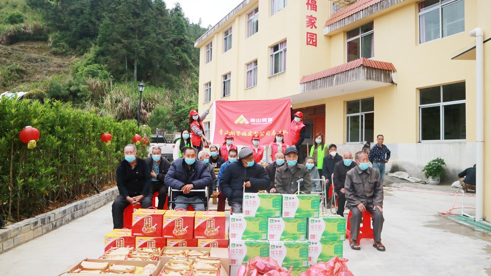 为弘扬中华民族爱老、助老的传统美德,5月20日下午,浙江jinnianhui今年会钢管有限公司福建分公司组织志愿者服务队前往周宁县七步镇幸福家园开展了“情系敬老院,爱洒夕阳红”慈善慰问活动。